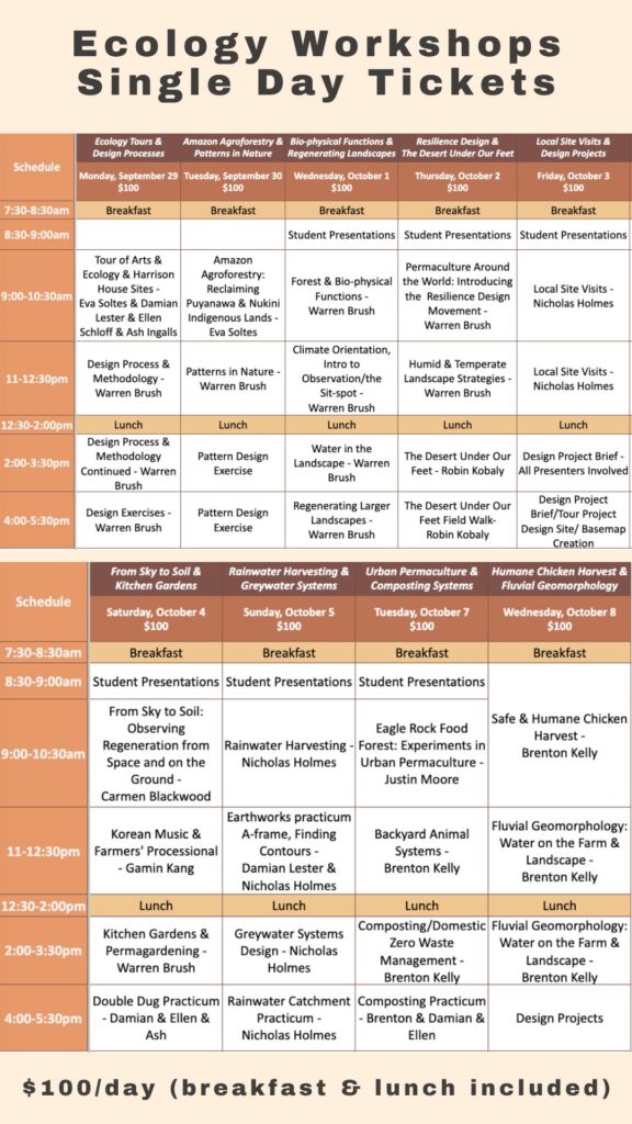 Sep 29-Oct 8, 2025. Single-Day Ecology Workshops. $100/Day, (includes breakfast & lunch)